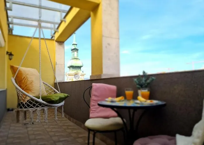 The 1-room Panoramic Top Terrace is located in the 01. Budavar district, and Deli Palyaudvar tube station is nearly a 5-minute walk away. Staying in the apartment, nestled a mere 0.7 km from the subterranean Hospital in the Rock Nuclear Bunker Museum, guests can relax on a sunny patio.
